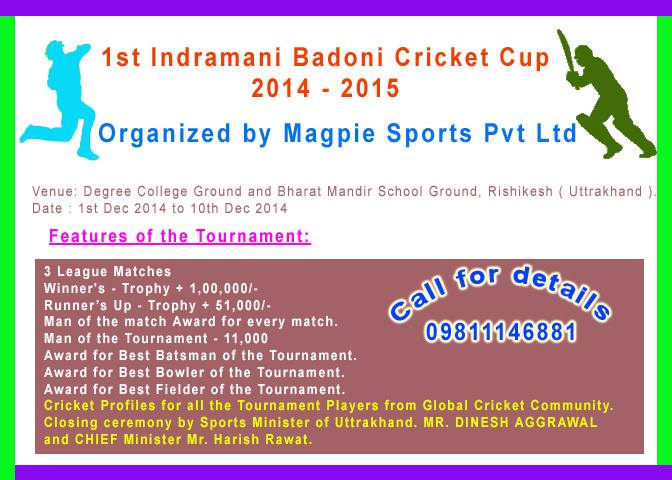 1st Indramani Badoni Cricket Cup will be start 1st December ...